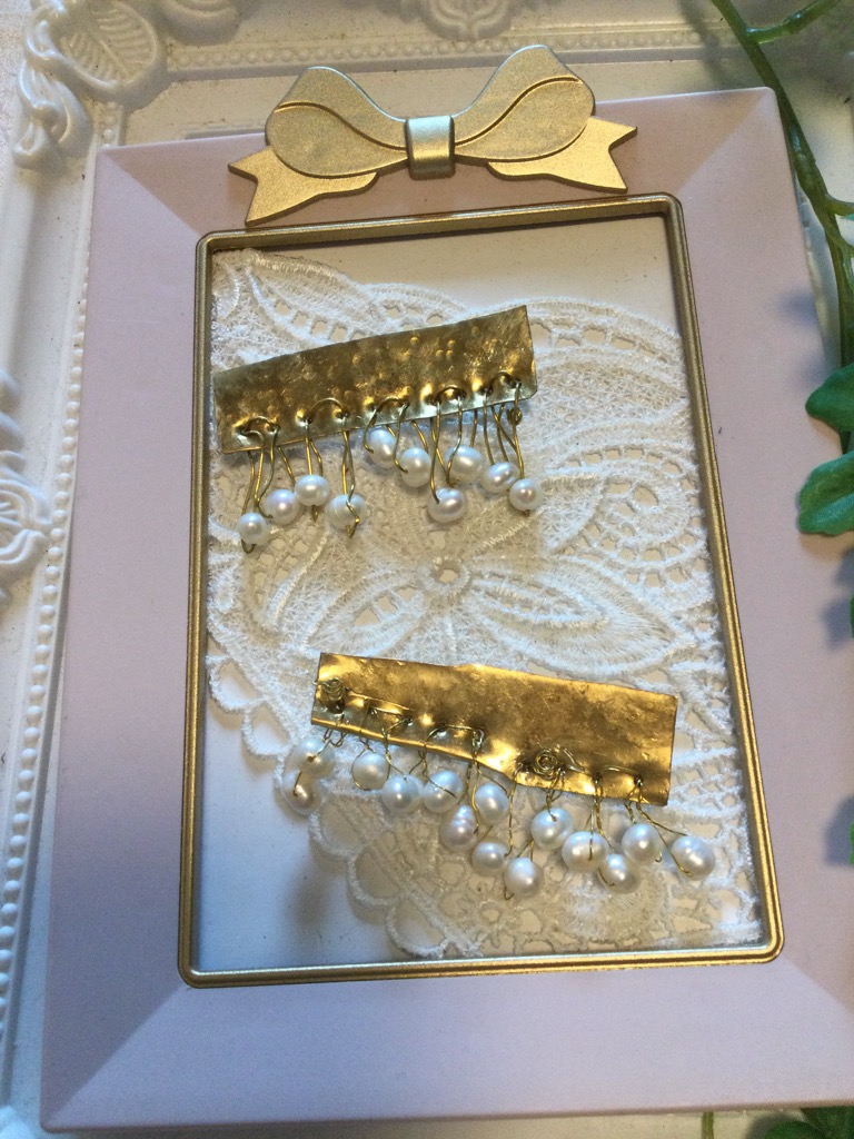 真鍮板と真鍮線に淡水パールを入れてブローチを作りました。