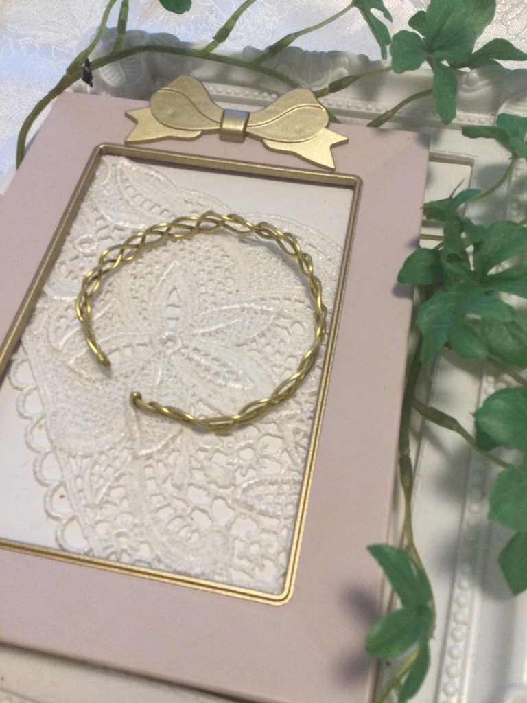 真鍮線でバングル作ってみました。二本で捻りを加え叩いてから硬くしてから、形を作りました。