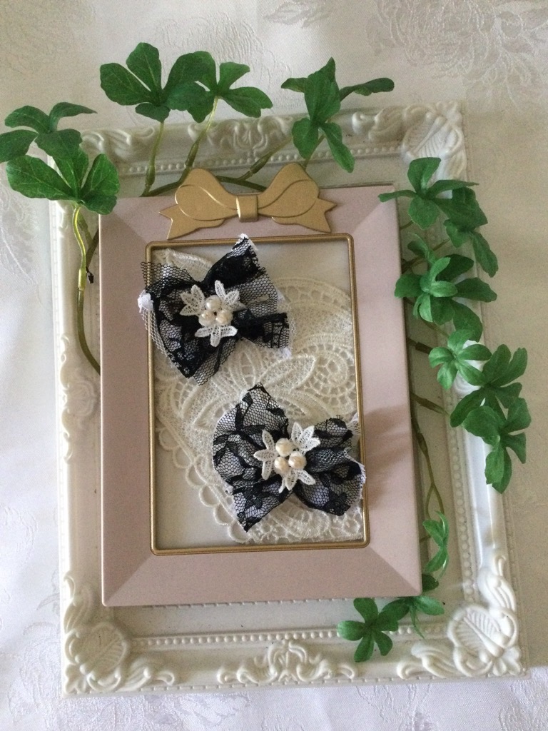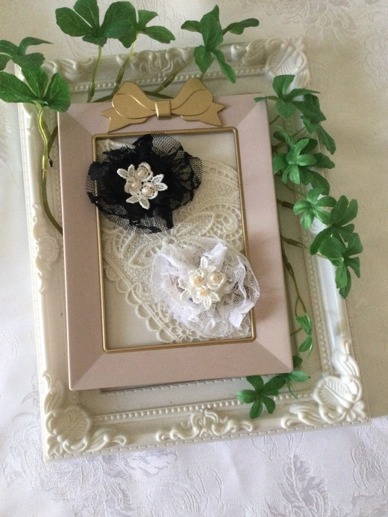 黒と白のレースブローチを作ってみました。
