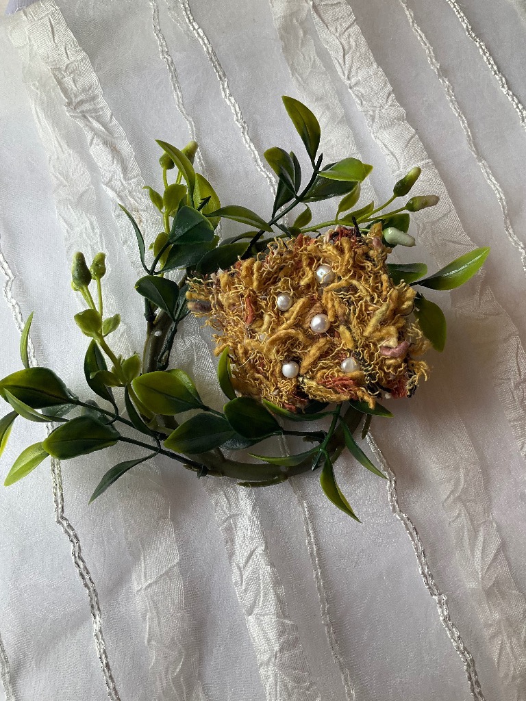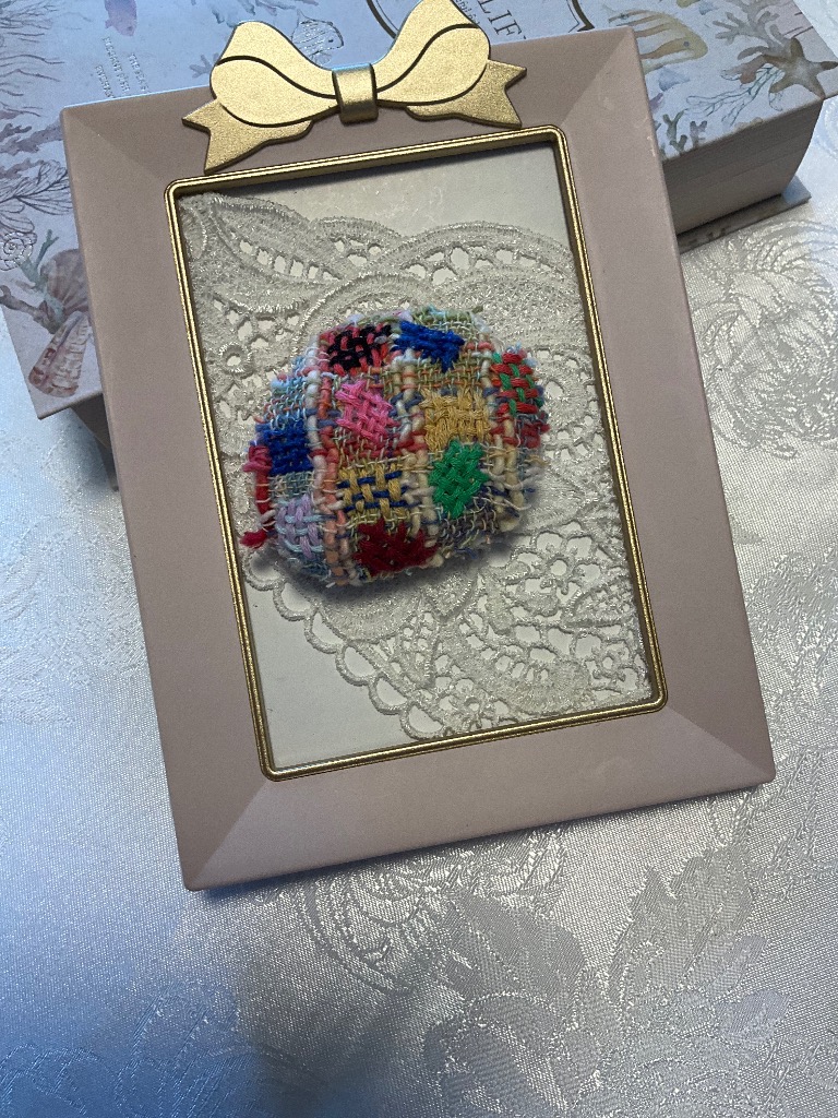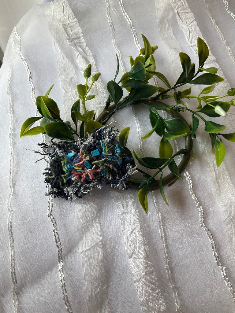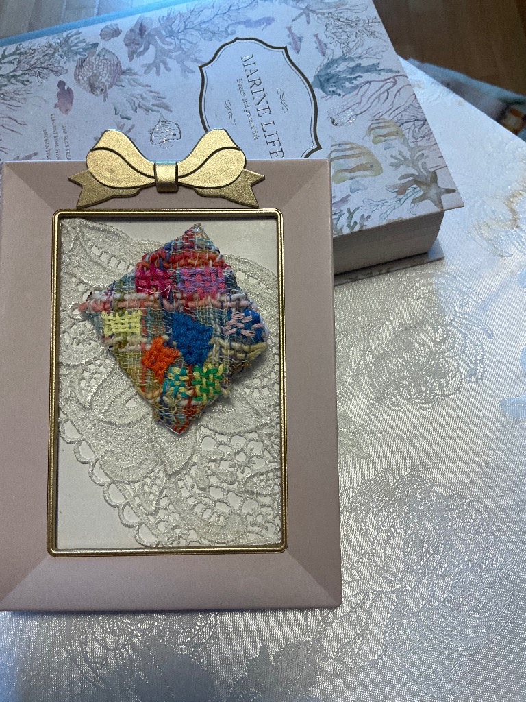 ダーニングという衣類の穴空きや擦り切れた箇所を修繕するヨーロッパの伝統的な手法を使って、ブローチを試作してみました。