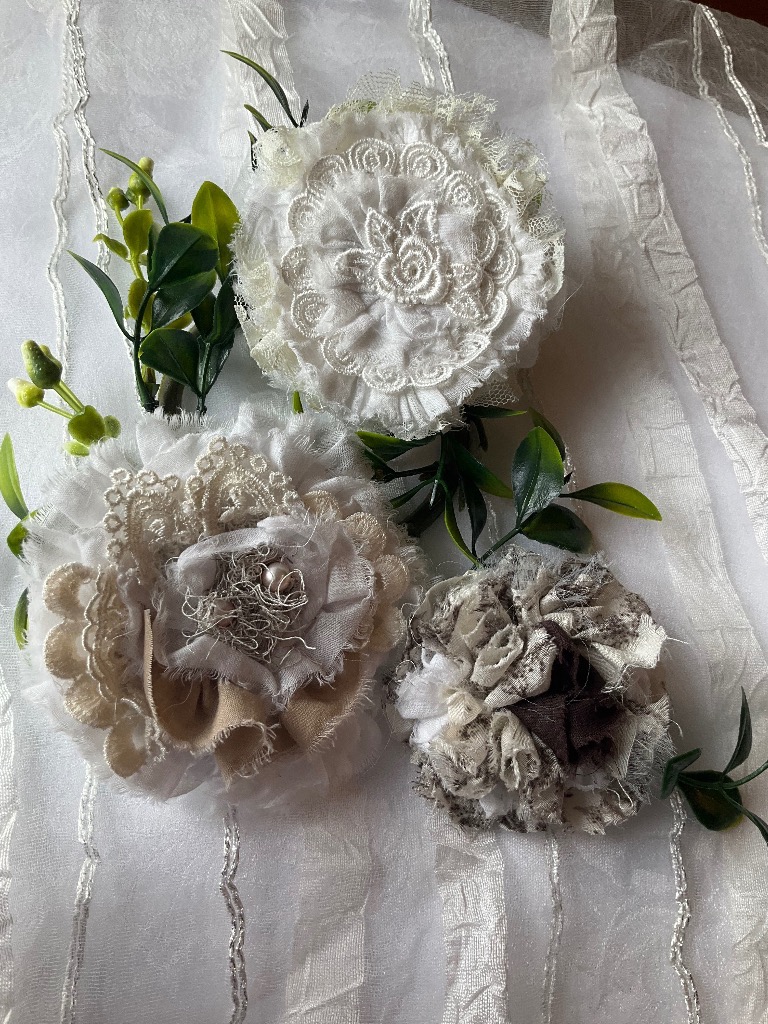 白の色を使いたかったので、ブラウスを裂いて作りました。