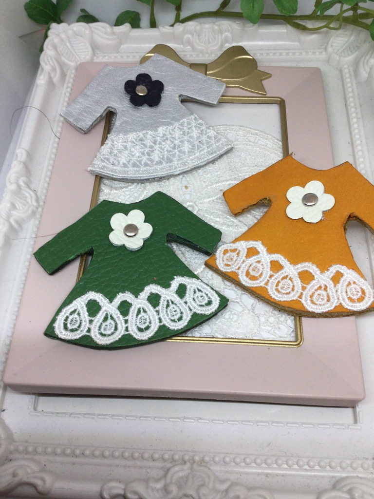 革とレースを使って、可愛らしい洋服のブローチを作ってみました。