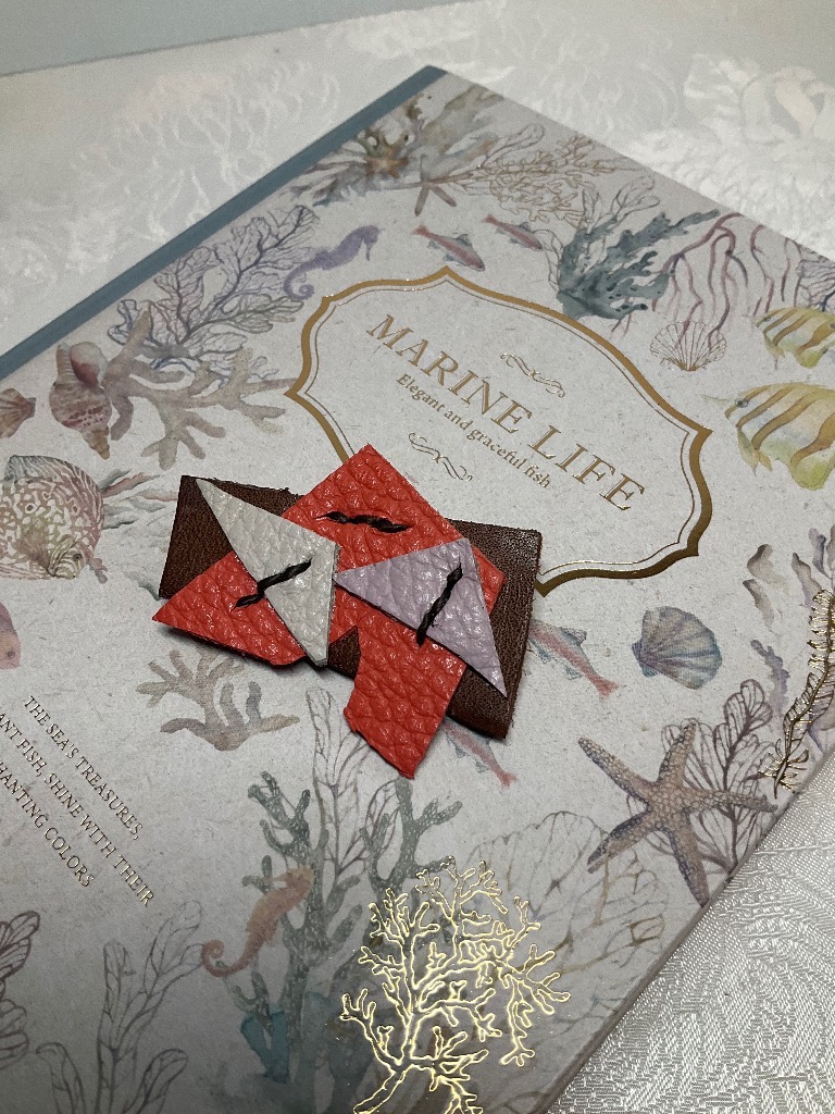 革のブローチ
