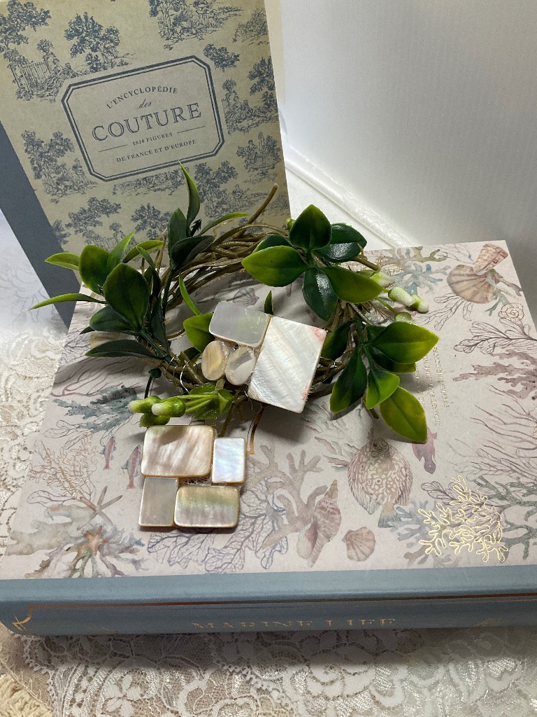 マザーオブパールの四角を使ってブローチを作りました。
