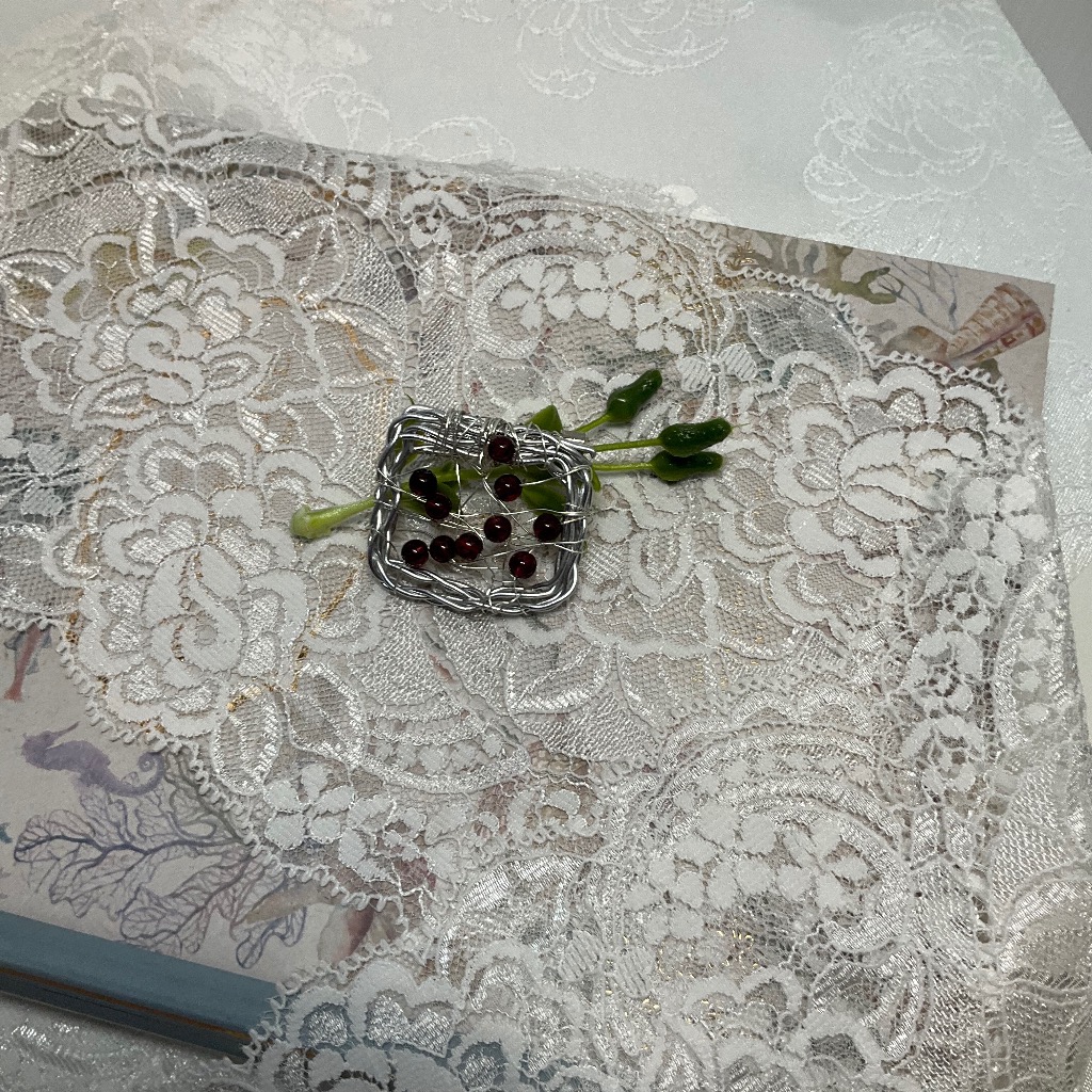 アルミ線を使った四角のブローチに、ガーネットを使ってみました。