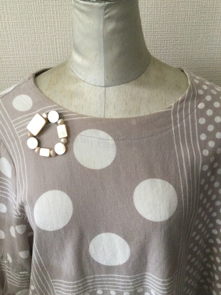 真鍮線3本で三つ編みしてみました。三つ編みの片方に淡水パールとすりガラスのビーズを編み込みしてブローチを作りました。