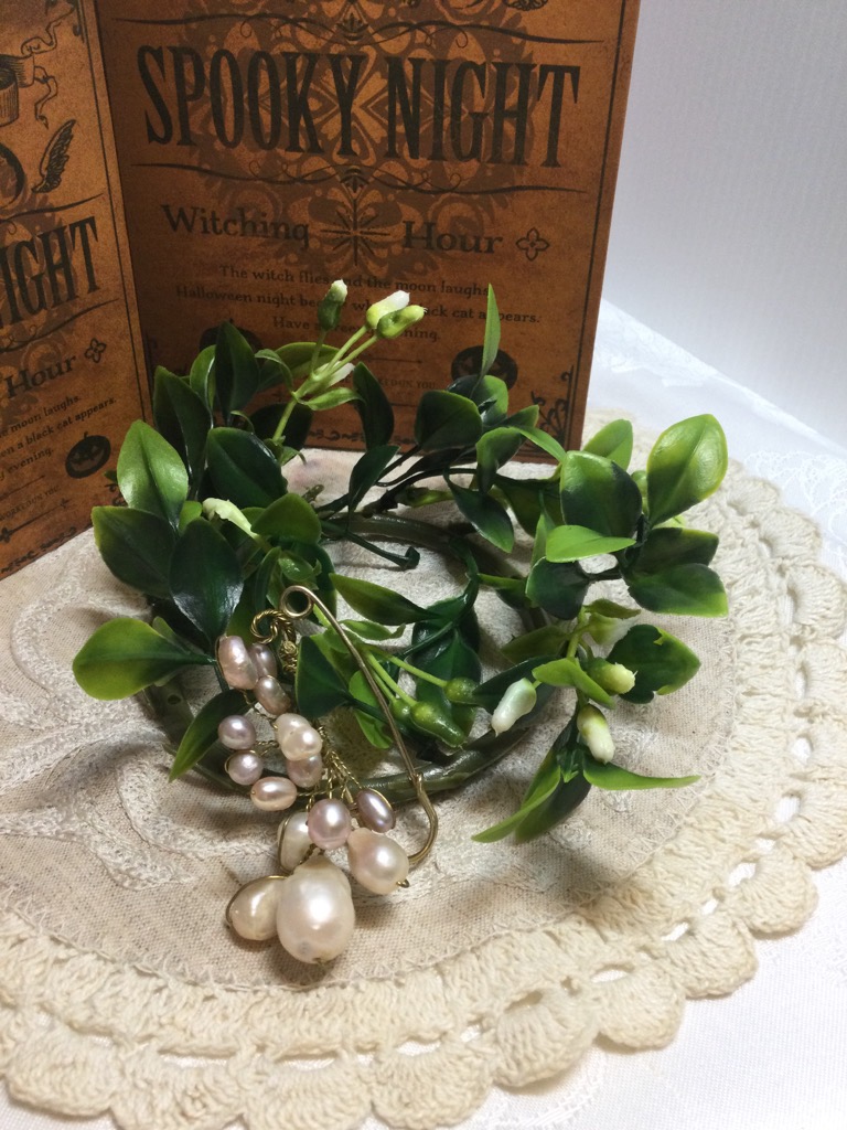 カブトピンにバロックパールを付けて、華やかさを出してみました。#海津市#ハンドメイド#雑貨#ピアス#イヤリング#革小物#ネット通販#おちょぼさんレッドクラウド